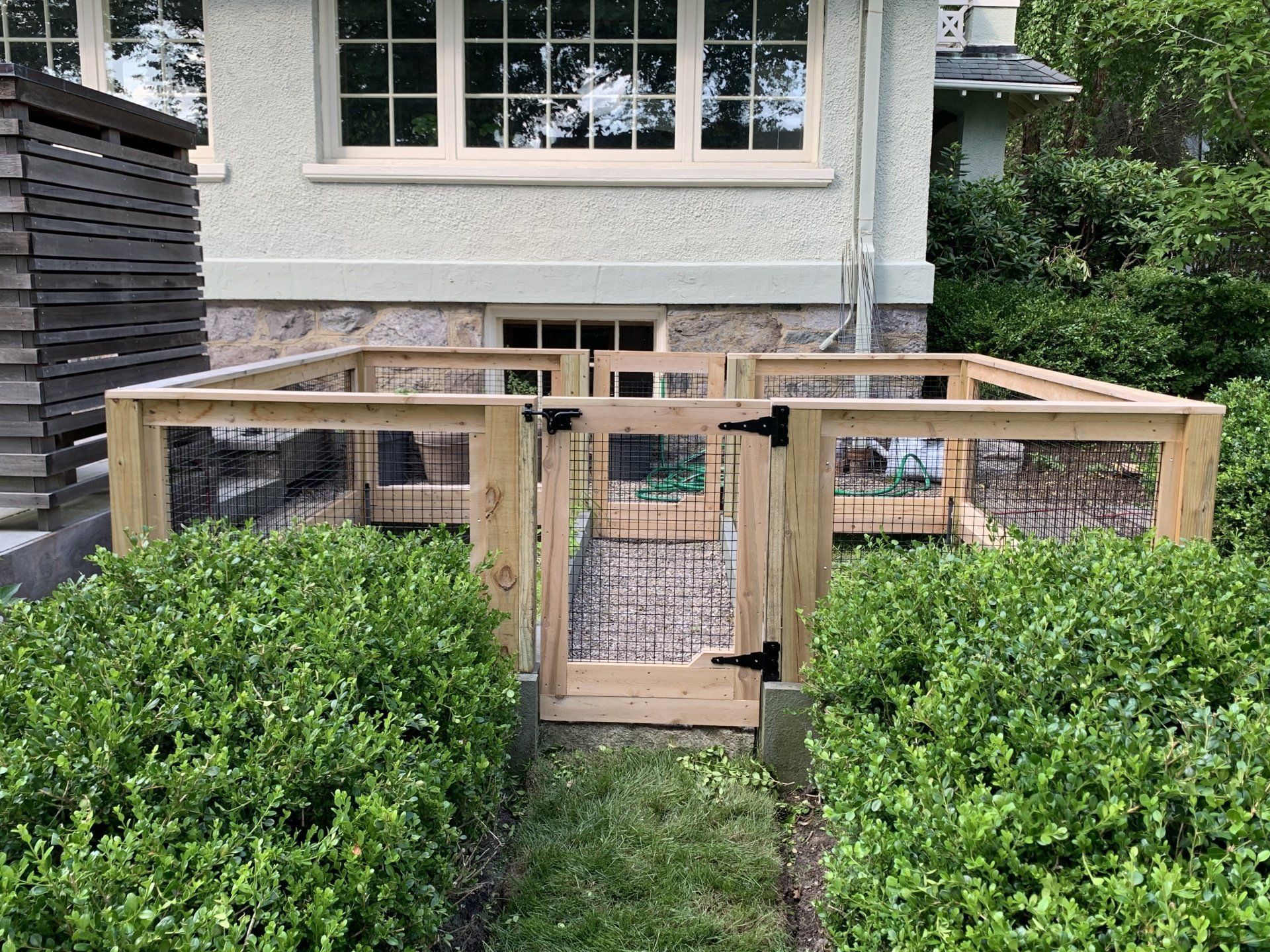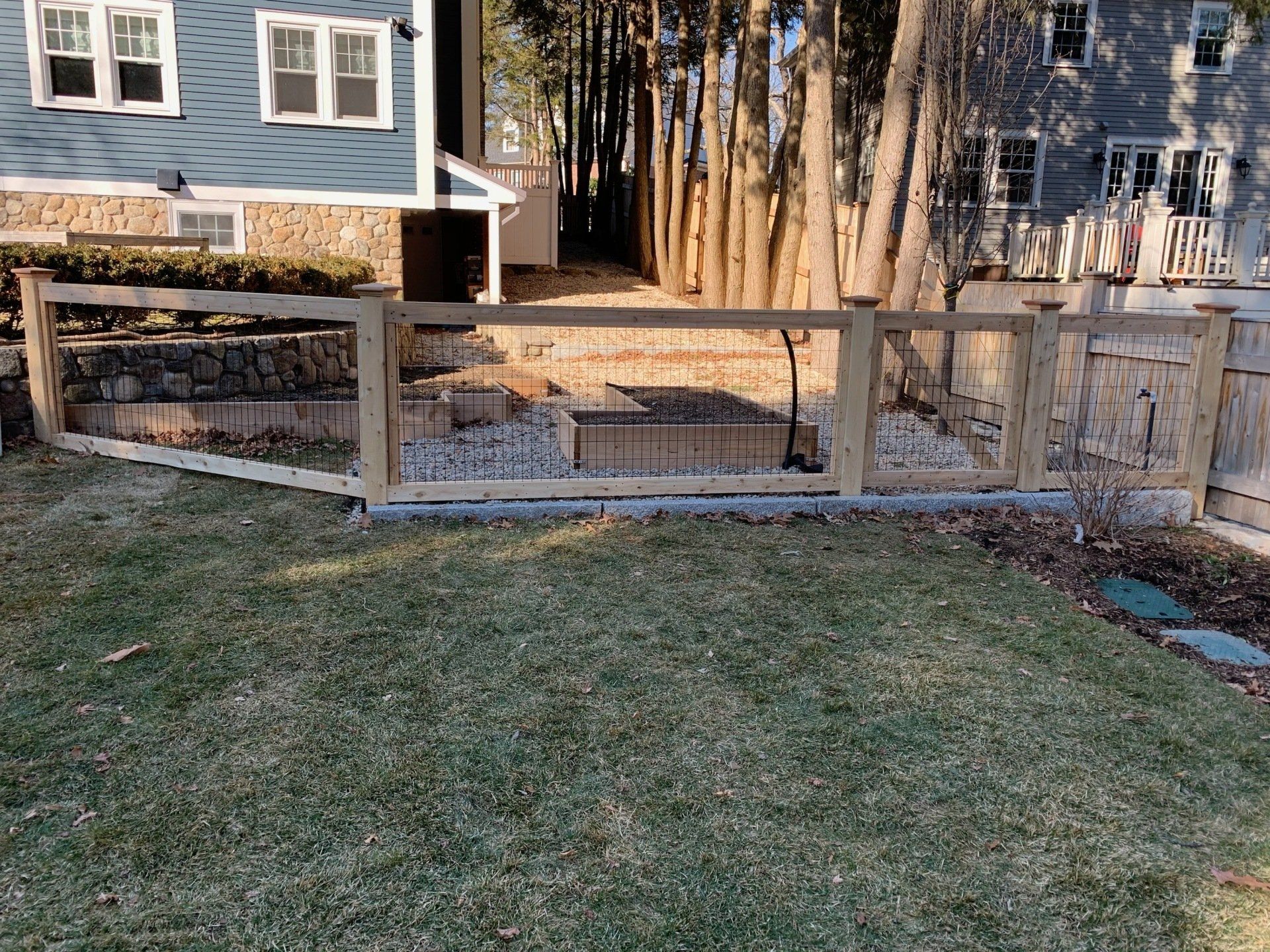 Our Blackstone style is an excellent low-profile way to frame your garden, keep children and pets in or animals out. It is also great as a boundary to define your property line. Welded wire fencing is framed with 2x4 cedar rails & 1x4 cedar trim boards.