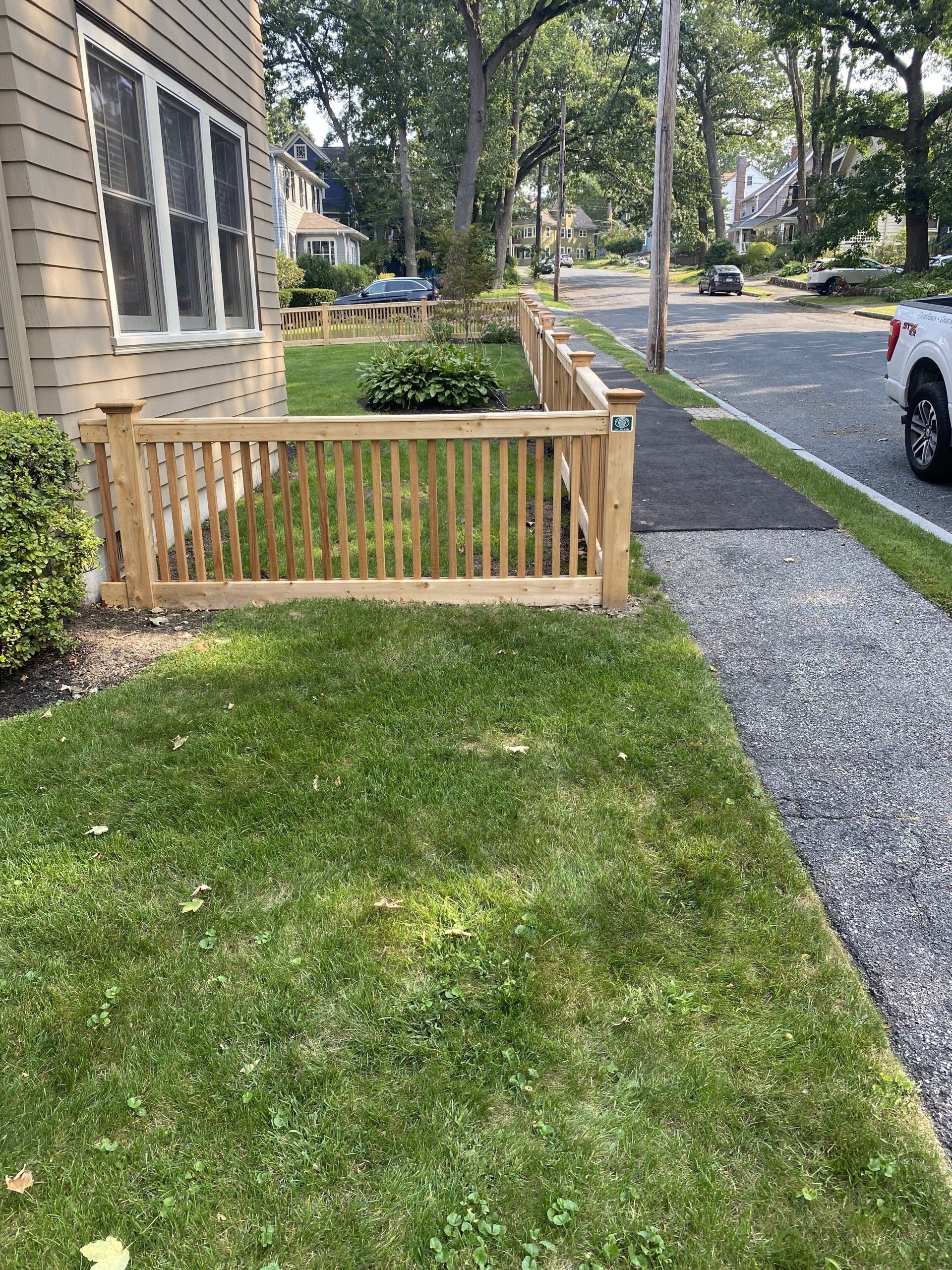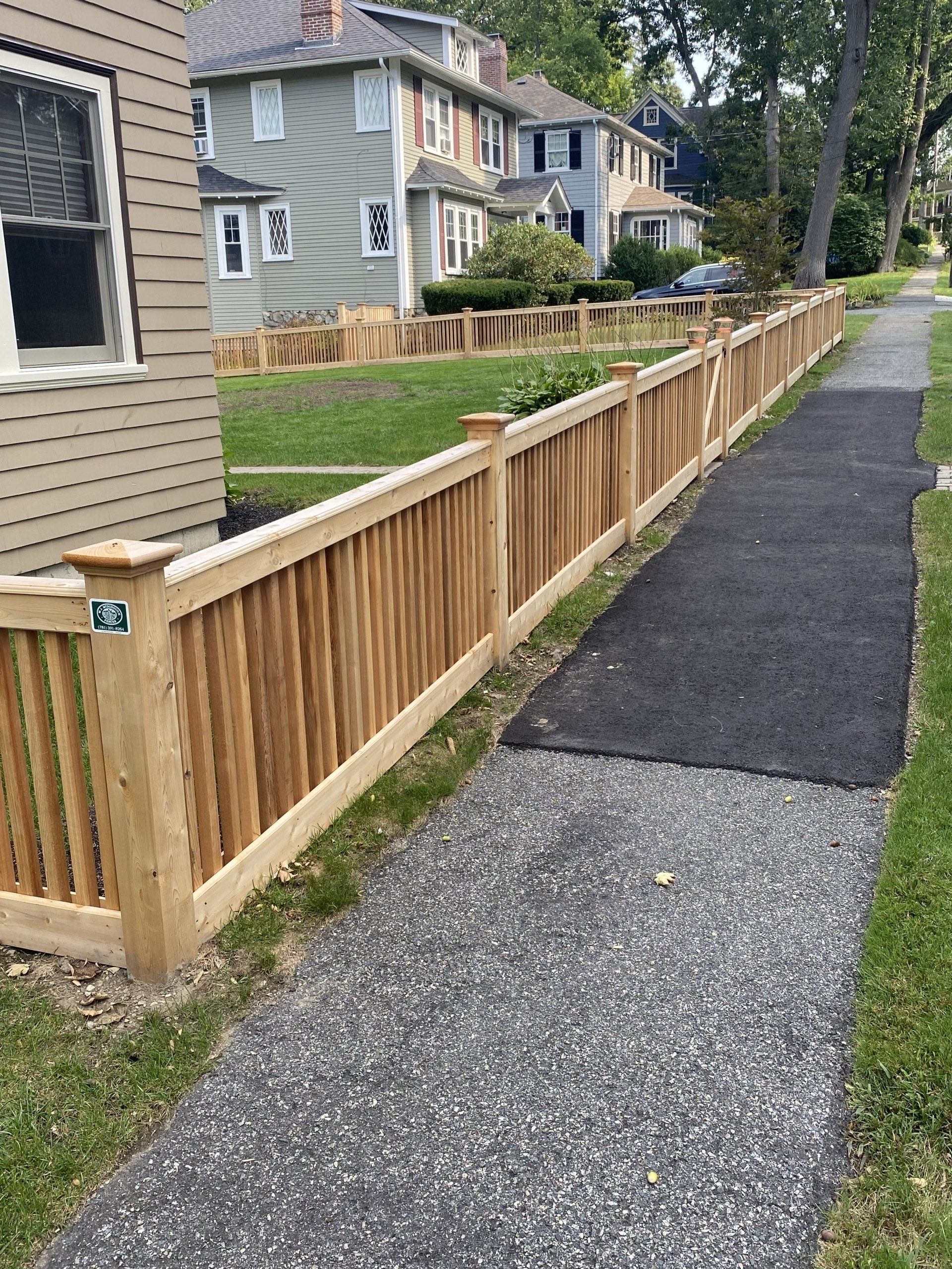 The capped Concord adds a touch of formality to our elegant Concord picket fence. Constructed with our 2 x 2 red cedar pickets, a 1 x 4 detailed fascia and cap is added to the top of the fence.