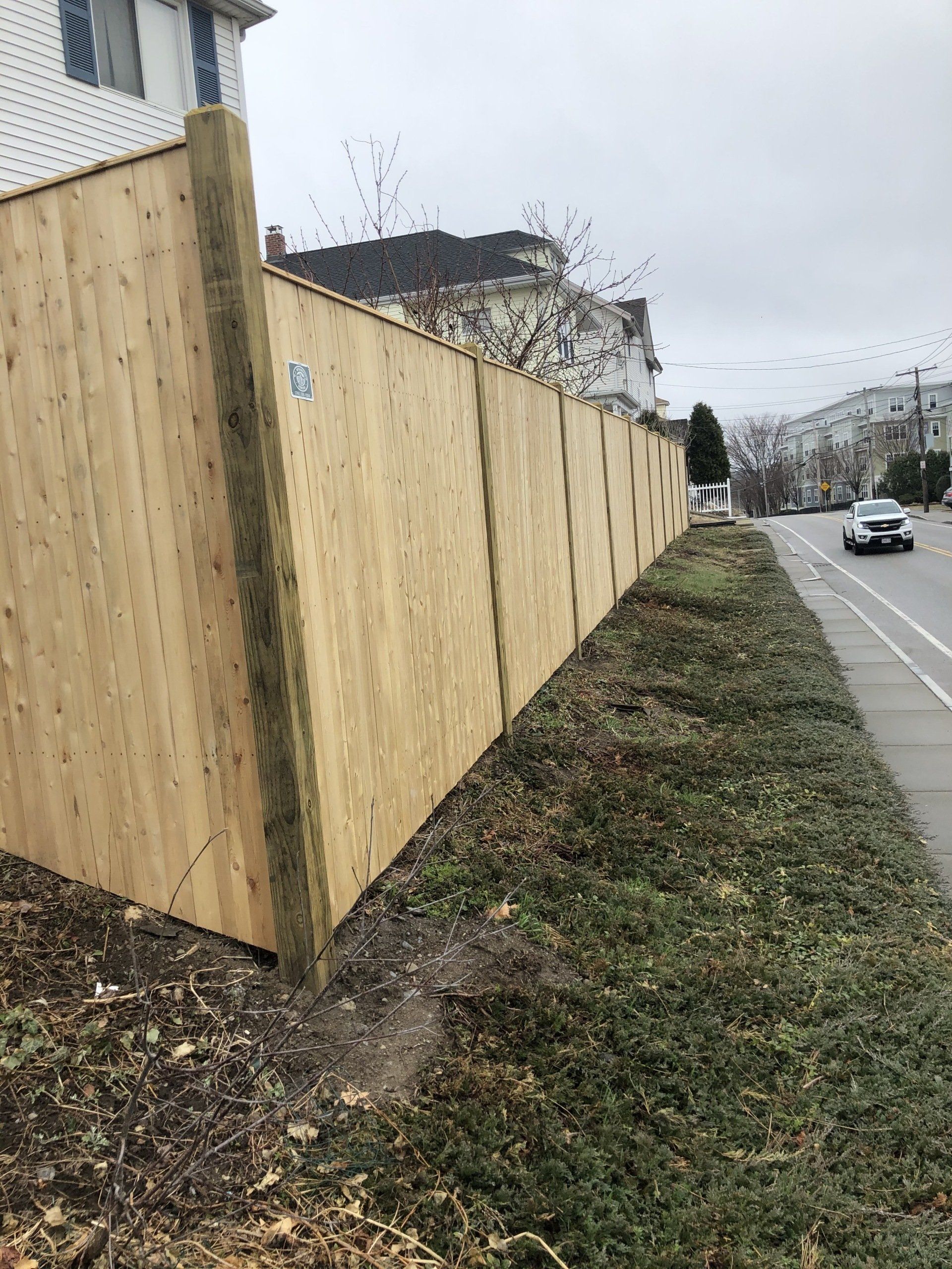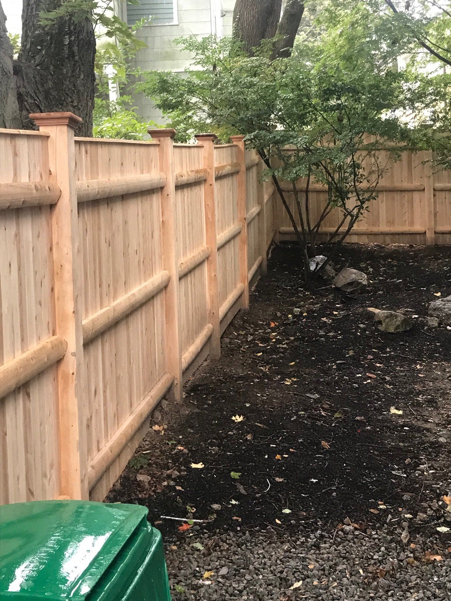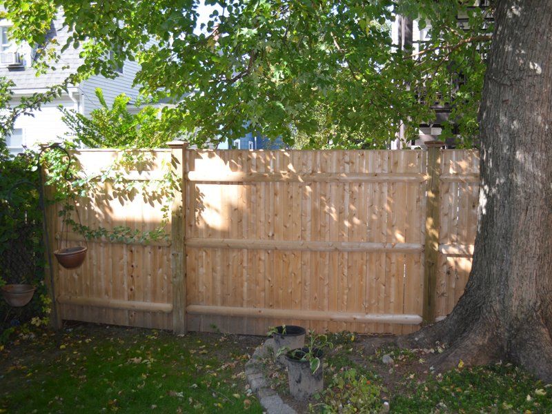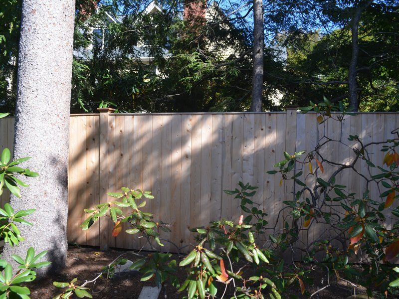 The stately Charles is one of our most popular styles of privacy fence. Constructed with 1 x 4 butted or 1 x 6 tongue and groove boards on 2 x 4 cedar backer rails and a 1 x 2 detailed dado cap strip for privacy, the Charles adds grace to any yard without breaking the budget.