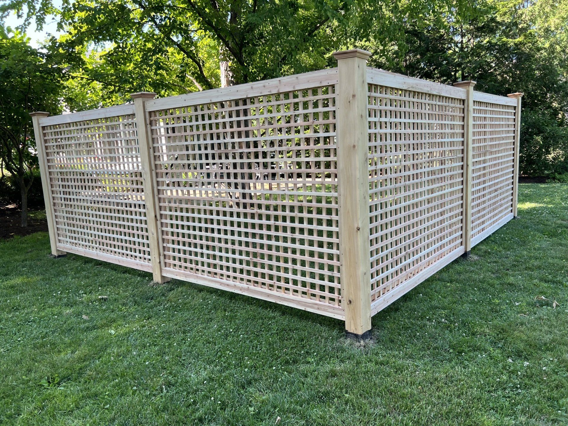 At W.J. McDonough Fence we take extra pride in the wide range and high quality of our custom made diagonal, Victorian and square cedar Lattice. Made with ½” or ¾ “ thick cedar lath ranging from ¾” to 3½” wide. Our most popular lattice is made with ½” x 1 ½” lath. If you can imagine it we can build it!