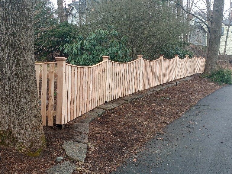 The gracious and versatile Sudbury uses 1" x 4"white cedar boards and easily conforms to any landscape. Its ability to be topped, trimmed and scalloped is only limited by your imagination.
